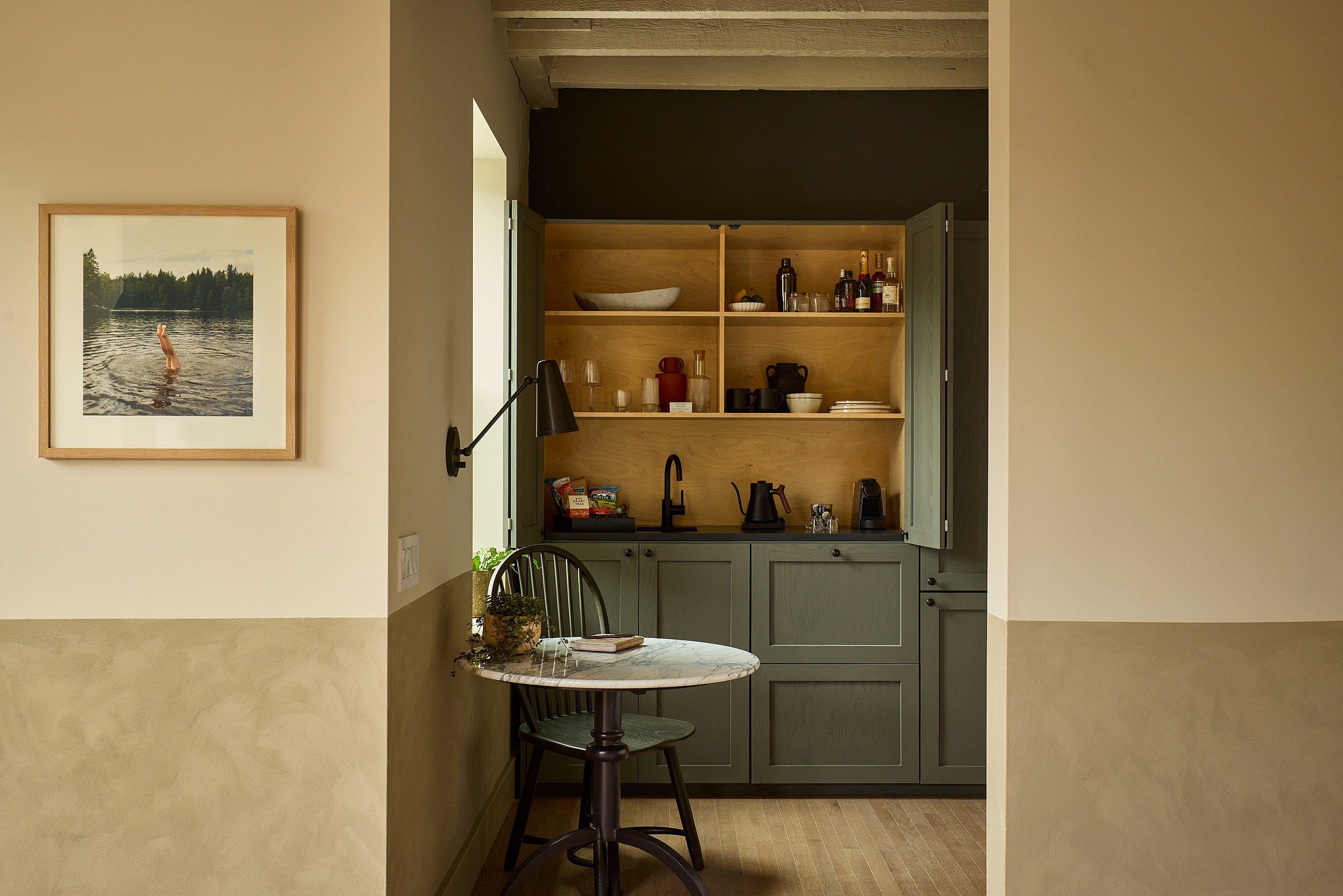 The bathrooms all feature imported Turkish tiles and marble vanities, as well as organic cotton robes from Printfresh—a women-owned local loungewear brand—Frette towels and Le Labo bath products. Every guest room has either a hidden kitchenette behind a locally built wooden pantry or a minibar with Nespresso machines and Fellow electric tea kettles.