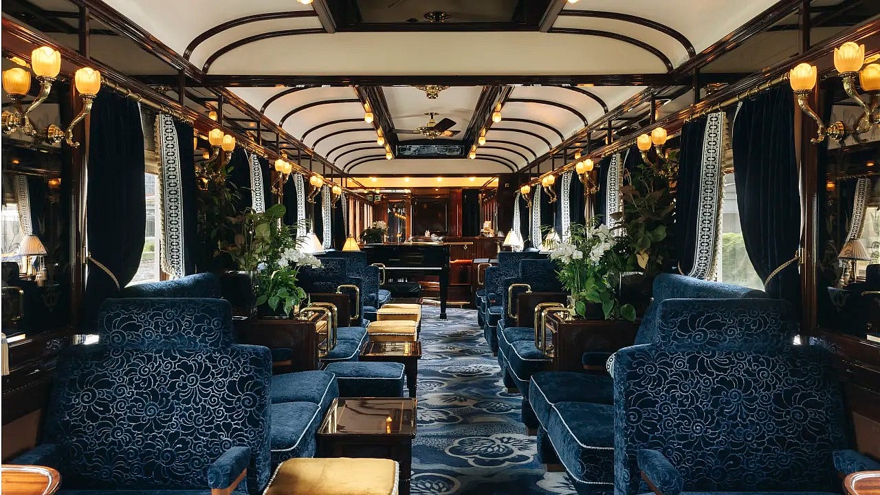 The route is a nod to the 1859 arrival of the luxury champagne in Singapore, and the train boasts handsome cherry wood-paneled rooms and a piano bar carriage.