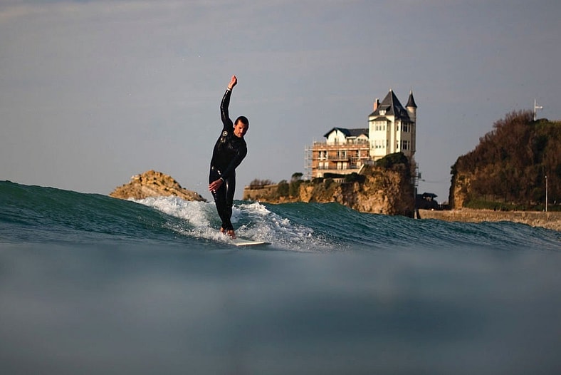 These days the likes of model Tina Kunakey, a Biarritz native who was formerly married to über-cool French film star Vincent Cassel, can be seen dancing at her favorite boîte Bar de la Plage after a long day spent surfing and lounging on the beach. Biarritz’s location on the Bay of Biscay in the northeast Atlantic Ocean makes for epic waves—it’s credited as the birthplace of surfing in France, a reputation it earned after an actor filming the 1950s screen adaptation of Ernest Hemingway’s The Sun Also Rises first dipped a longboard into the breakers at the Plage de la Côte des Basques. Biarritz has since hosted the French national surfing championships 11 times as well as three world championships (most recently in 2019), was a stopover on the professional world surfing tour in the ’80s and ’90s, and currently plays host to several annual world-class surf festivals.